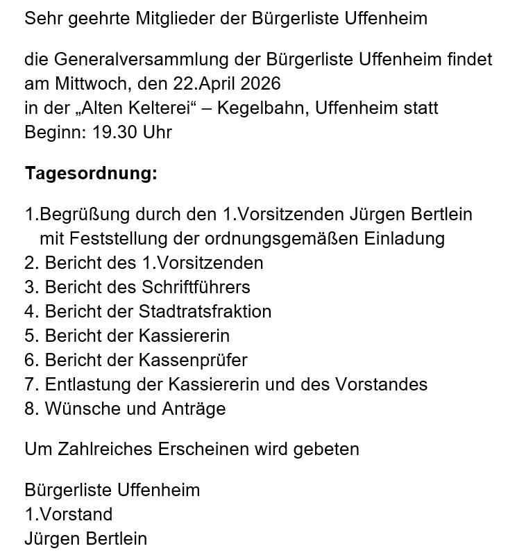 Die Bürgerliste Uffenheim ist das ganze Jahr über aktiv: Mit regelmäßigen Veranstaltungen, offenen Stammtischen und Aktionen schaffen wir Raum für Austausch, Ideen und gemeinsames Engagement.